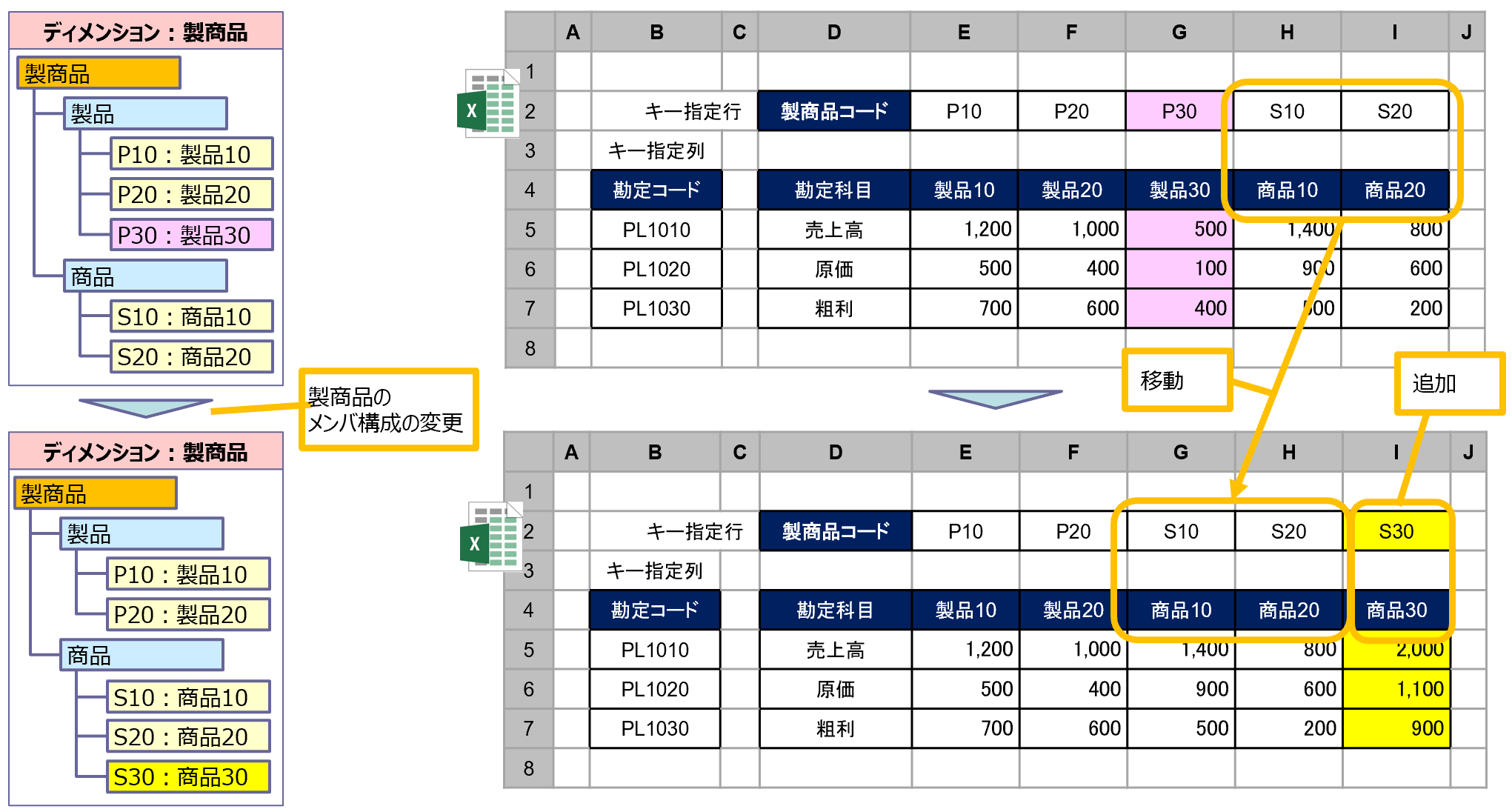 Excel Linkに設定したメンバは、Fusion_Palceの設定を変更した場合には、メンテナンスをする必要があります。